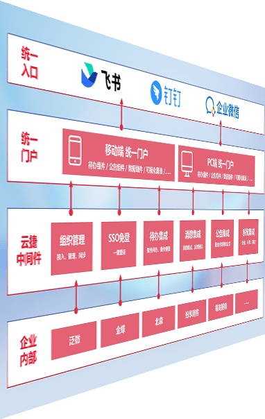 对协作平台提供支持服务,,,,支持企业应用与协作平台对接,,,包含组织同步、、、、消息集成、、、待办集成等。。。支持目前主流的协作平台:钉钉、、、、企微和飞书。。。