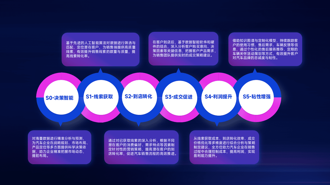 通过拓宽潜在客户来源、、、优化线索分配并提高到店转化率,,,,以增强销售效率。。。同时,,利用线索数据不断优化分析模型,,,有效提升转化率,,,扩大营销影响力。。。